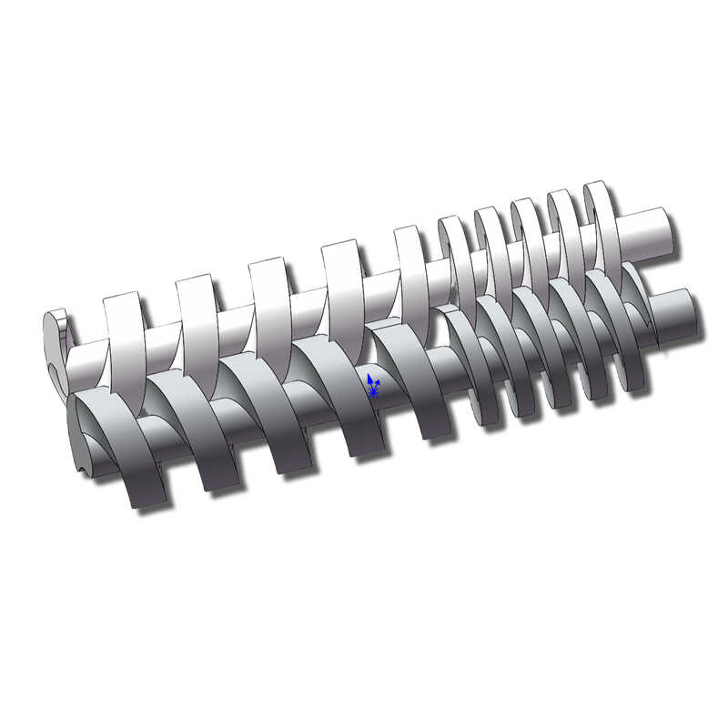 兩個(gè)螺桿設(shè)計(jì)為沿相反方向旋轉(zhuǎn),以保持同步而不咬傷,例如控制碎塊的均勻性